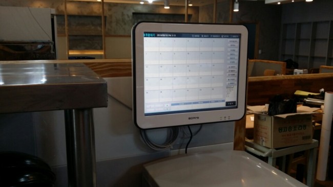 주문포스(Order POS) 입니다. ECPOS 입니다. 매장이 클 경우 일일히 메인포스로 가서 주문을 하기 힘들기 때문에 저곳에서 결재할 일은 없기 때문에 프린터, 돈통은 설치하지 않았고 MSR 또는 필요없기 때문에 분리해 놓은 상태입니다. 정말 편하답니다.